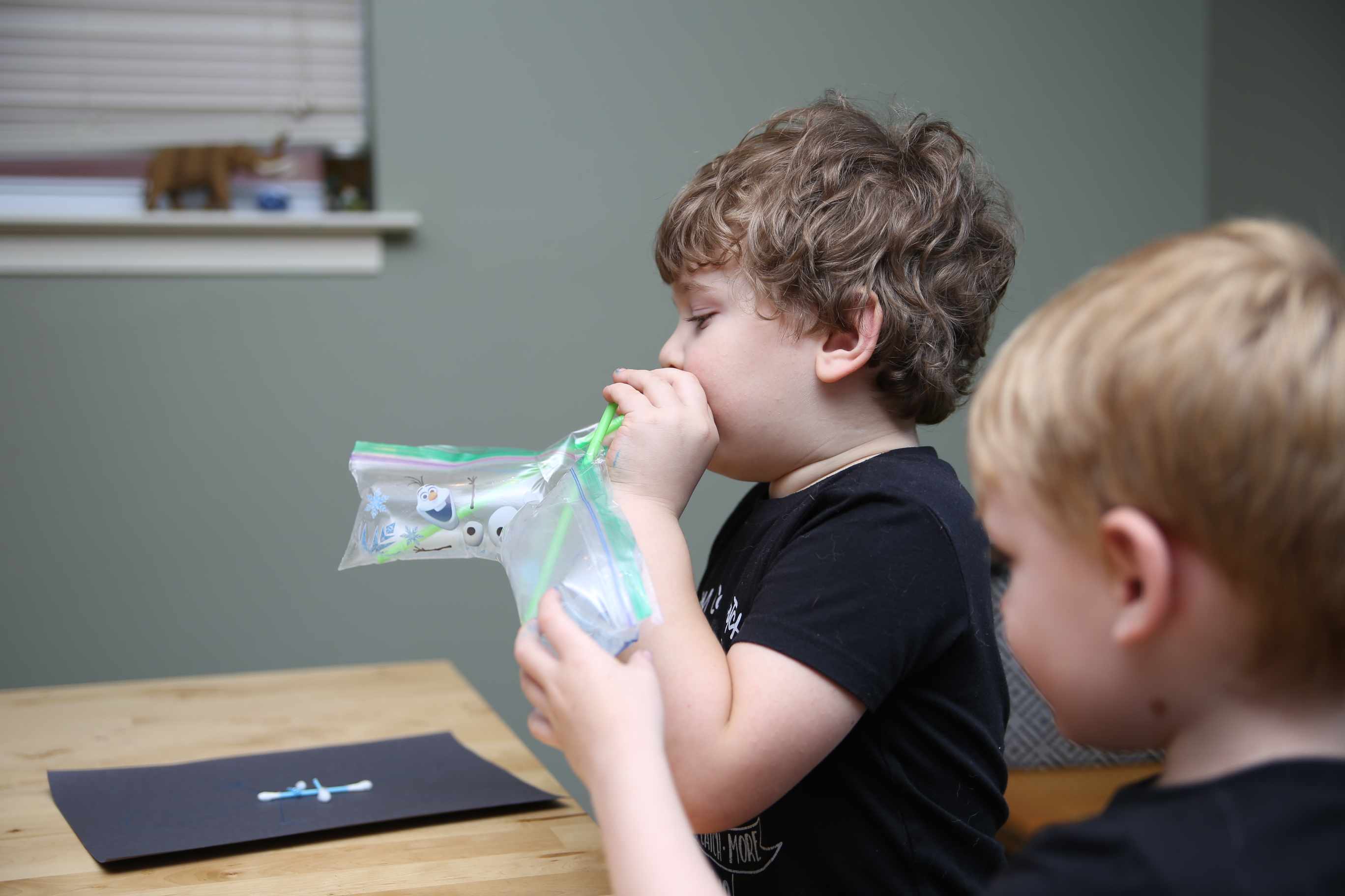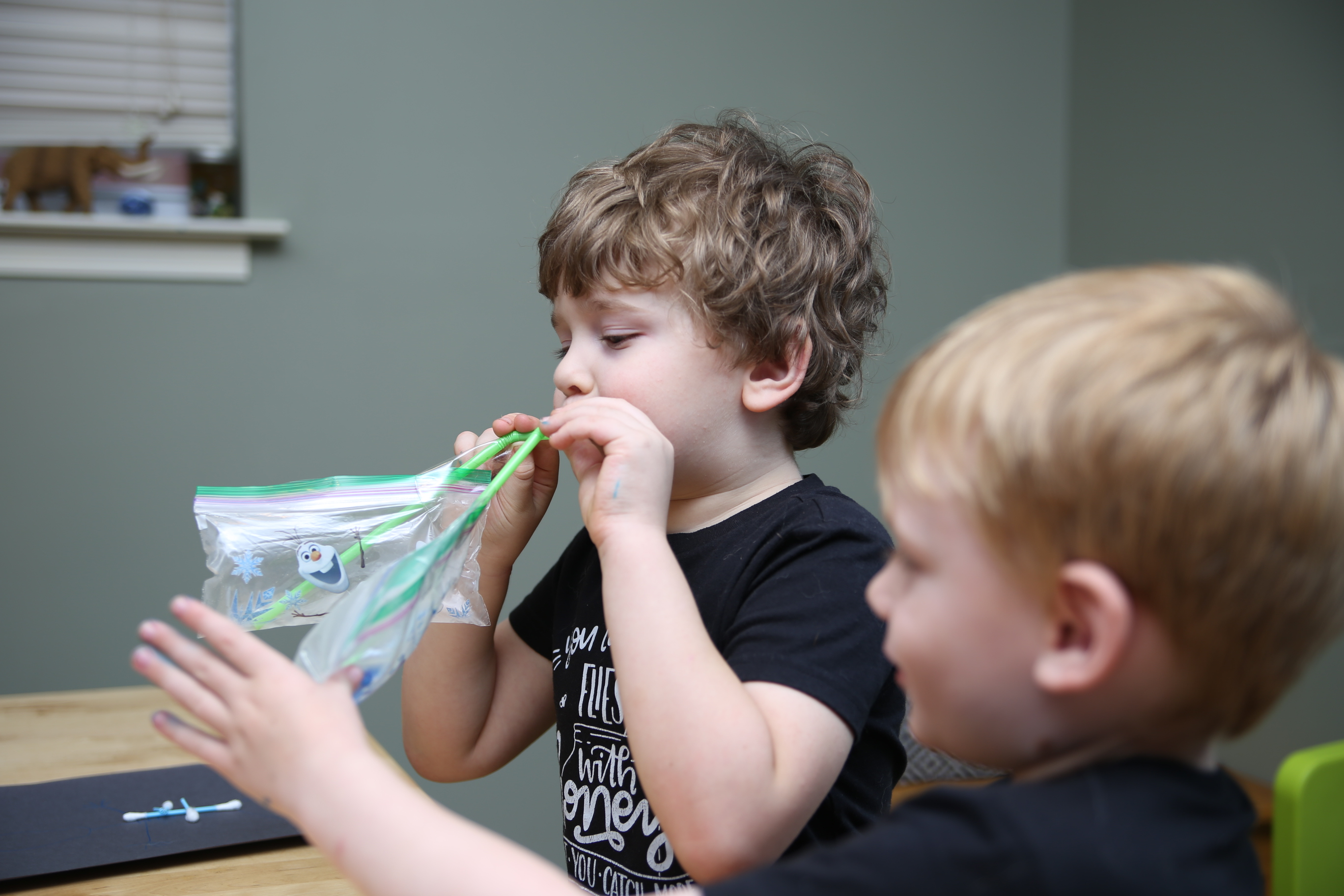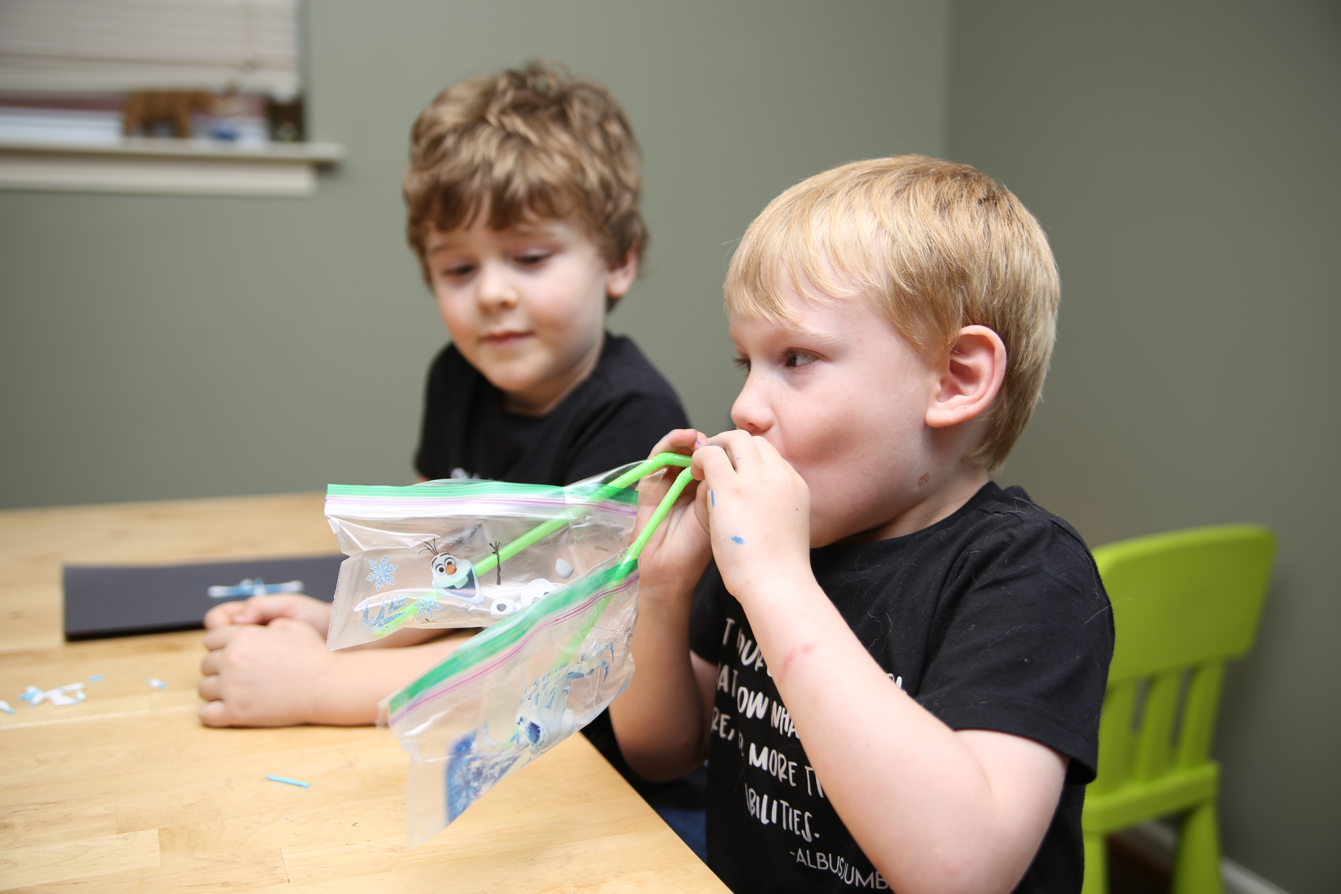 I also made plastic baggy lungs with straws and tape. The kids had so much fun with it! It was a great visual way to show them how lungs worked, especially using their own breath. This craft was so easy and cheap, but kept their attention the longest!