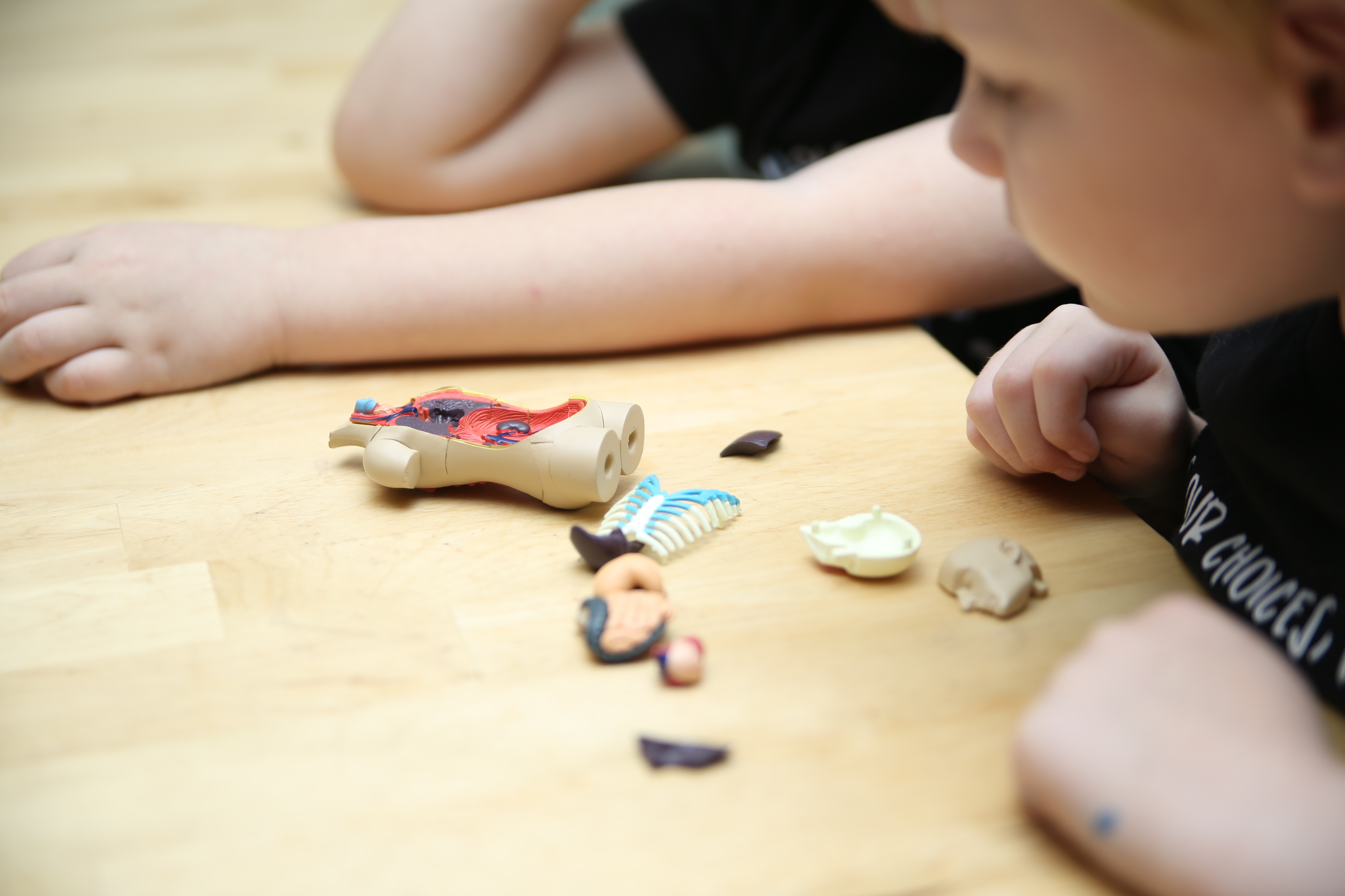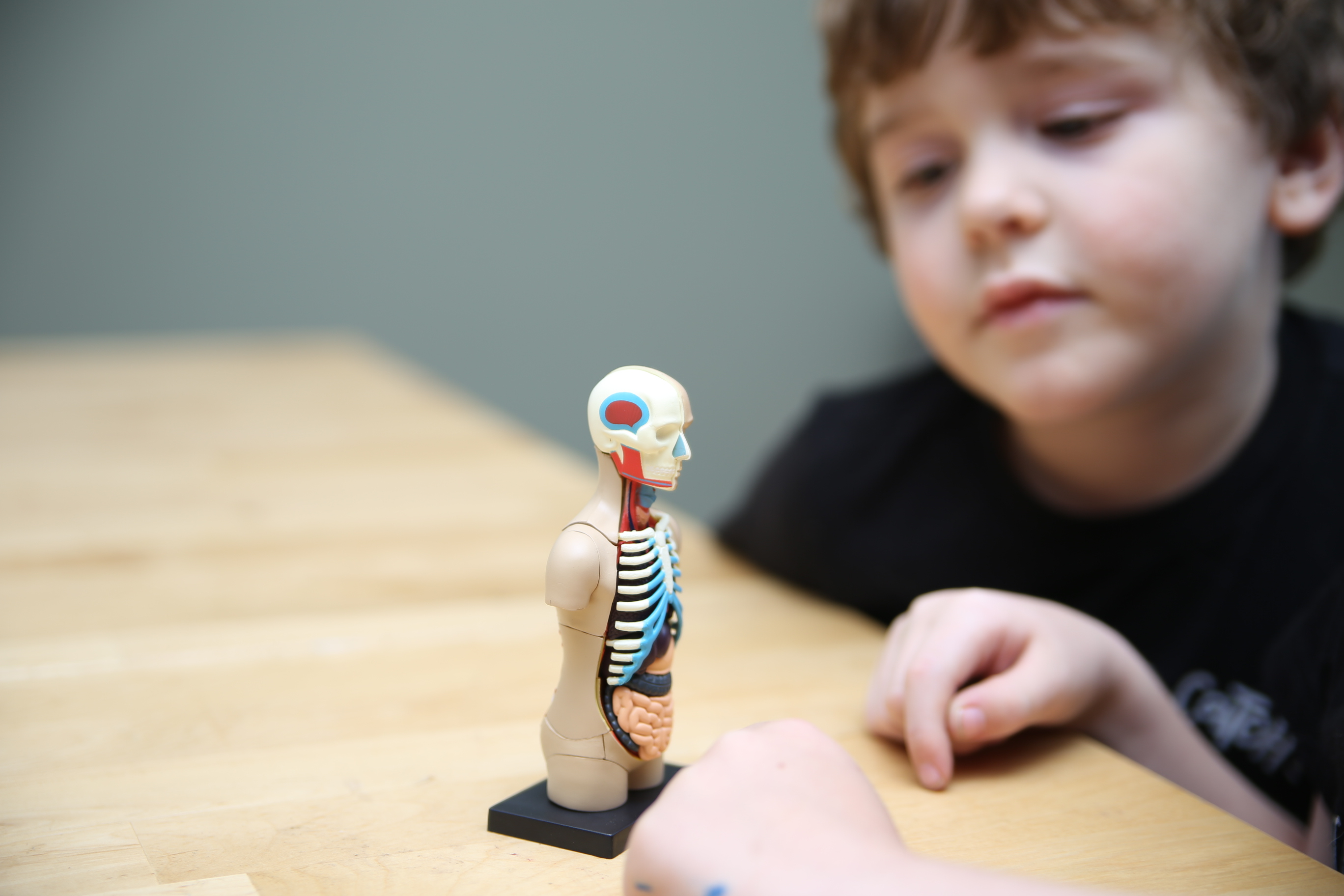 I also wanted something more advanced and accurate looking, so I purchased an inexpensive human body model made by Learning Resources. The kids enjoyed taking it apart, but putting it together was kind of tricky, even for me. They loved getting in depth with the model though, and kept pointing out all the parts they recognized.
