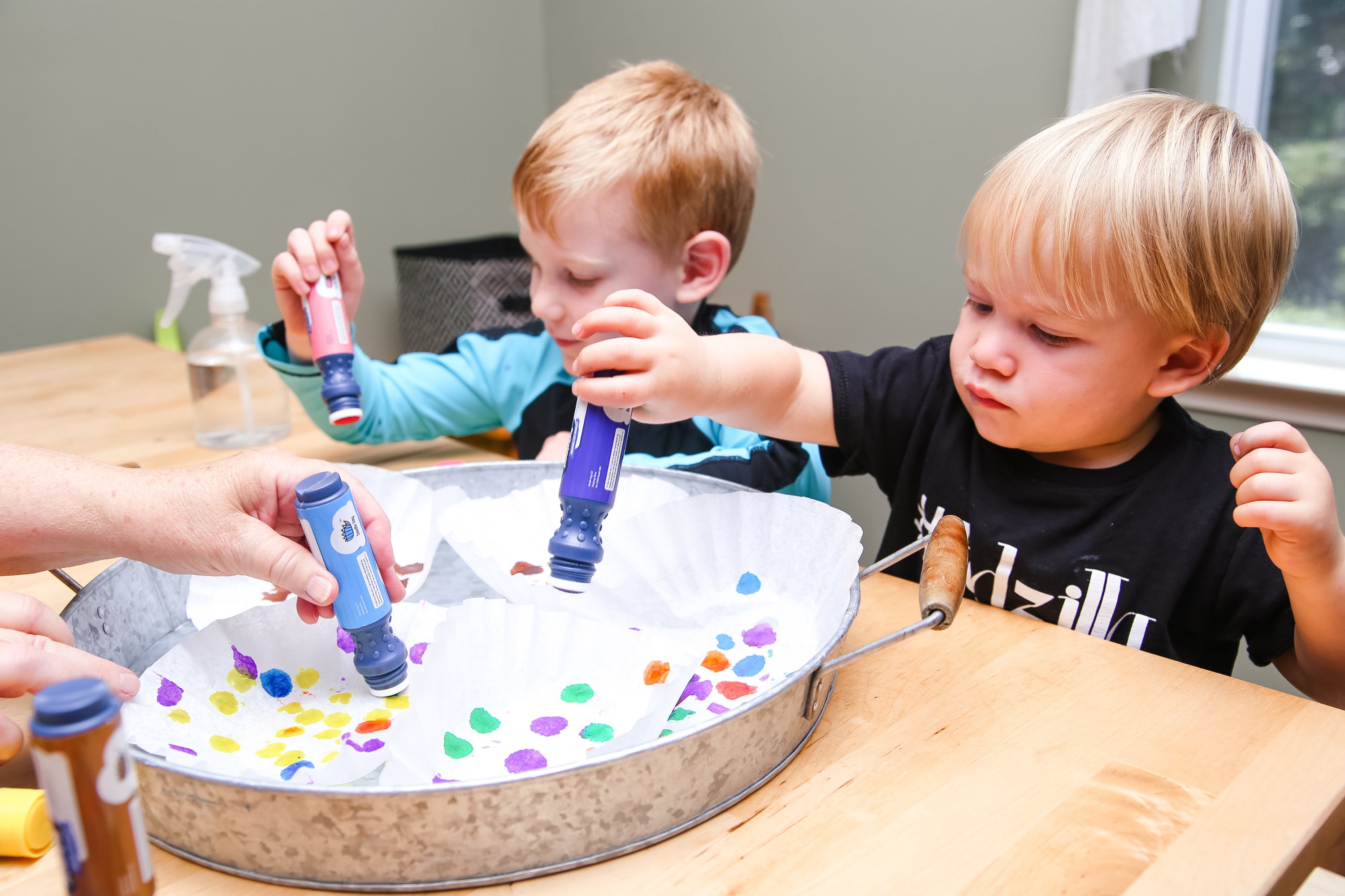 After the singular colors, the kids wanted to dab all kinds of crazy colors on the filters to see what would happen. The results weren’t as dramatic, but the kids still had a blast!
