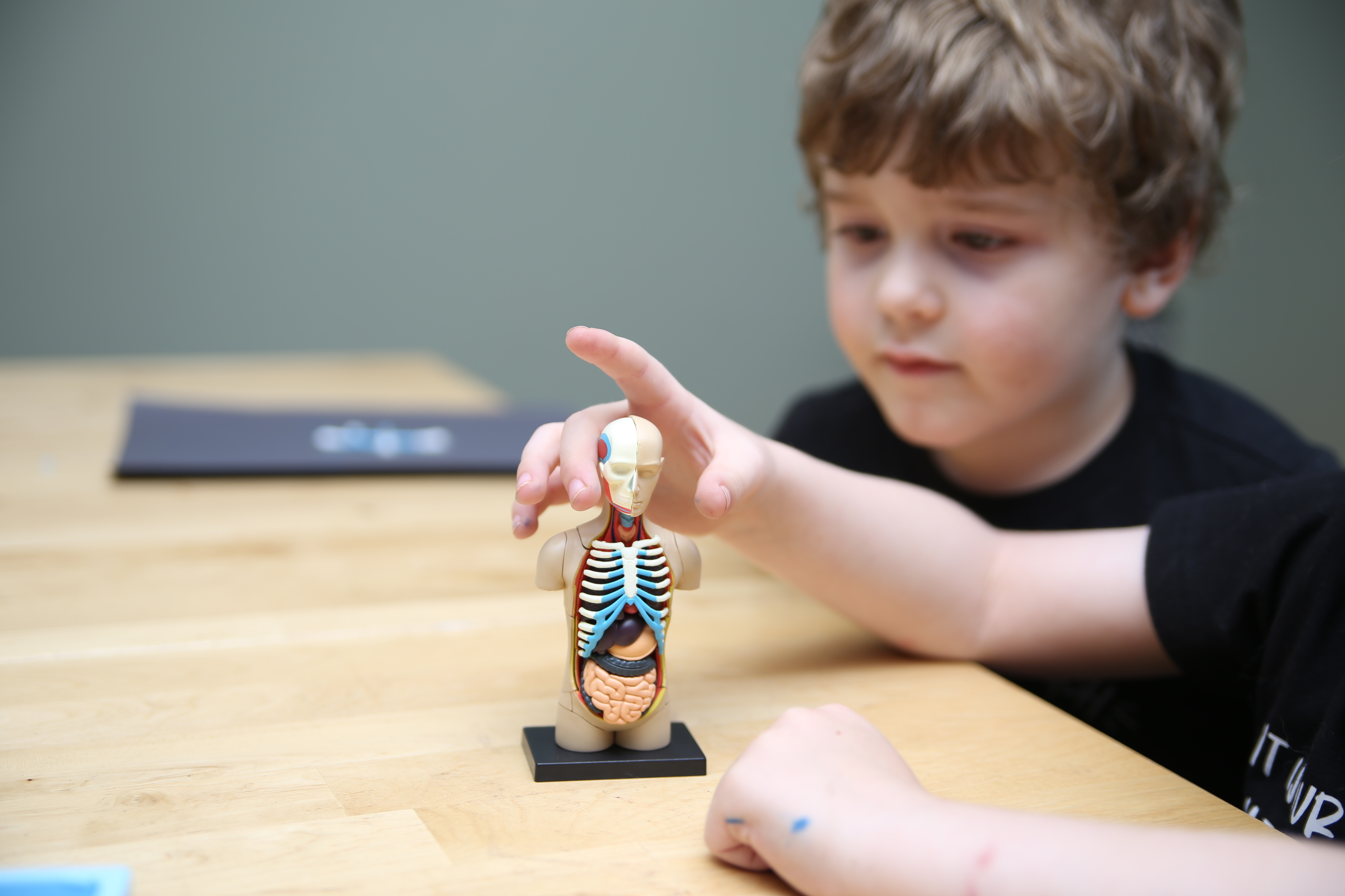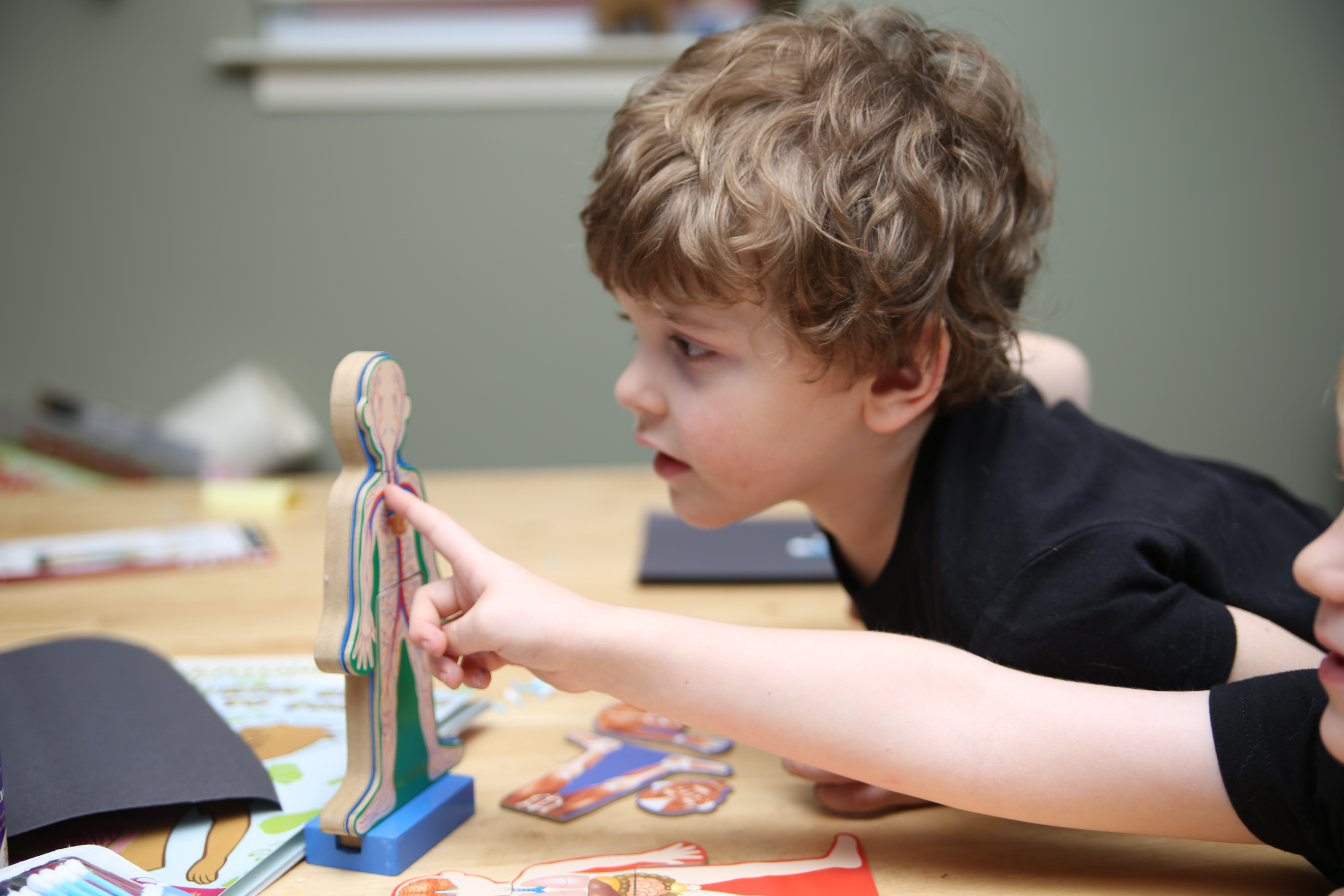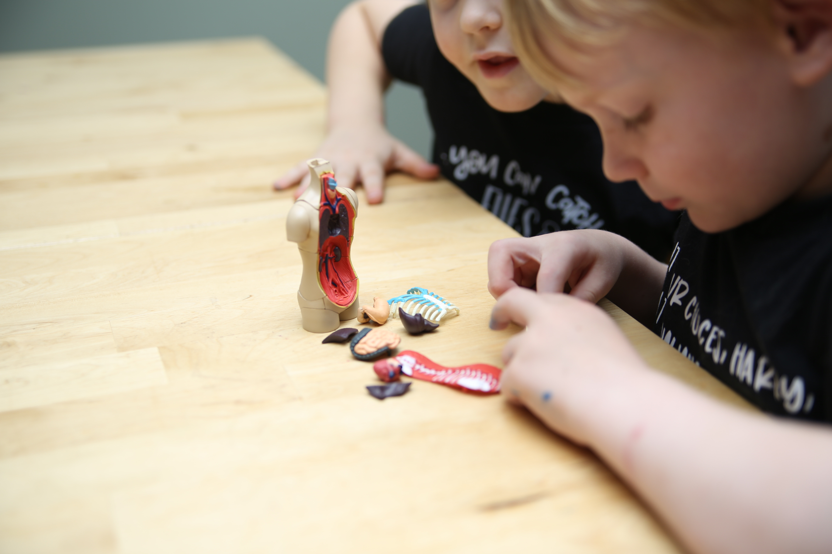 I also wanted something more advanced and accurate looking, so I purchased an inexpensive human body model made by Learning Resources. The kids enjoyed taking it apart, but putting it together was kind of tricky, even for me. They loved getting in depth with the model though, and kept pointing out all the parts they recognized.